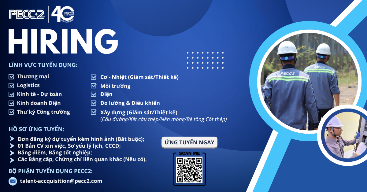 Gia nhập PECC2 Nơi bạn có thể góp sức vào những Công trình quy mô, đồng hành cùng Đội ngũ chuyên nghiệp trong Lĩnh vực Năng lượng.